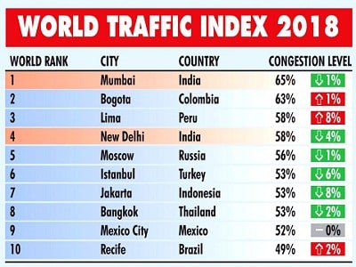 Mumbai’s traffic flow worst in world, Delhi at fourth spot