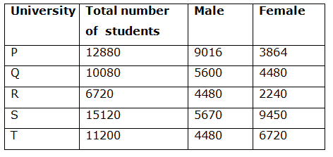 The following table shows the percentage distribution of total number of students who completed their graduation from different universities and the ratio of male to female among them.