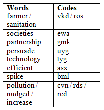 10) What is the code for the word ‘sanitation’?