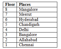 Eight people from different places of India are living in eight different floors in an apartment.The places are namely Chennai, Meerut, Allahabad, Delhi, Bangalore, Hyderabad, Mangalore and Chandigarh The lowermost floor numbered one, its above floor numbered two and so on till top most floor numbered 8.All the information is not necessary to be in the same order.