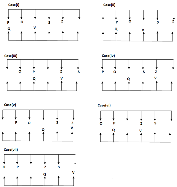 Twelve people O, P, Q, R, S, T, U, V, W, X, Y and Z are sitting in the two parallel table facing each other like some people faces north while some people faces south. All the information is not necessary to be in the same order.