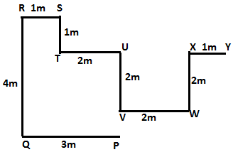 R stands 4m north of Q. W stands 2m east of V. U stands 2m north of V. T stands 2m west of U. M stands 4m south of N. P stands 3m east of Q.R stands 1m west of S.T stands 1m south of S.W stands 2m south of X. Y stands 1m east of X.