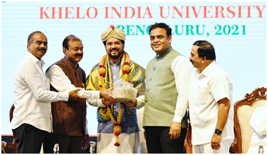 - On April 1, 2022, at the Sree Kanteerava Stadium in Bengaluru, Union Minister of Youth Affairs and Sports Anurag Singh Thakur and Governor of Karnataka TC Gehlot unveiled the Khelo India University Games 2021 (KIUG 2021) logo, uniform, mascot, and anthem.