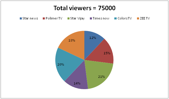 The following pie chart shows the percentage distribution of total number of television viewers of different channels in a certain city.