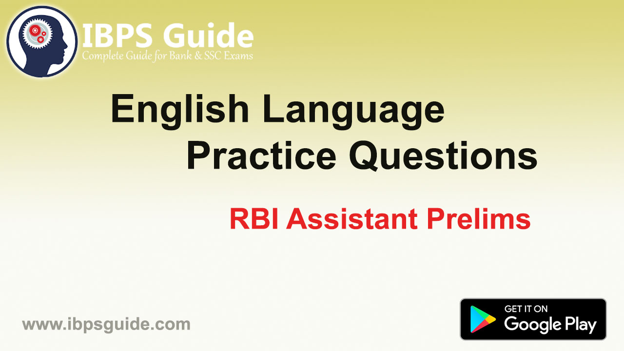 Dear Aspirants, Our IBPS Guide team is providing a new series of English Language Questions for RBI Assistant Prelims 2019…