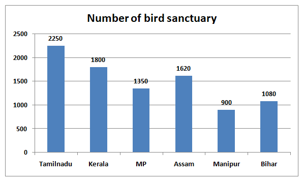 71) What is difference between the number of bird sanctuary in Manipur and MP?