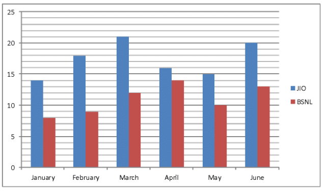 The given bar graph shows the number of sarees sold in two different online stores in six different days in a week.