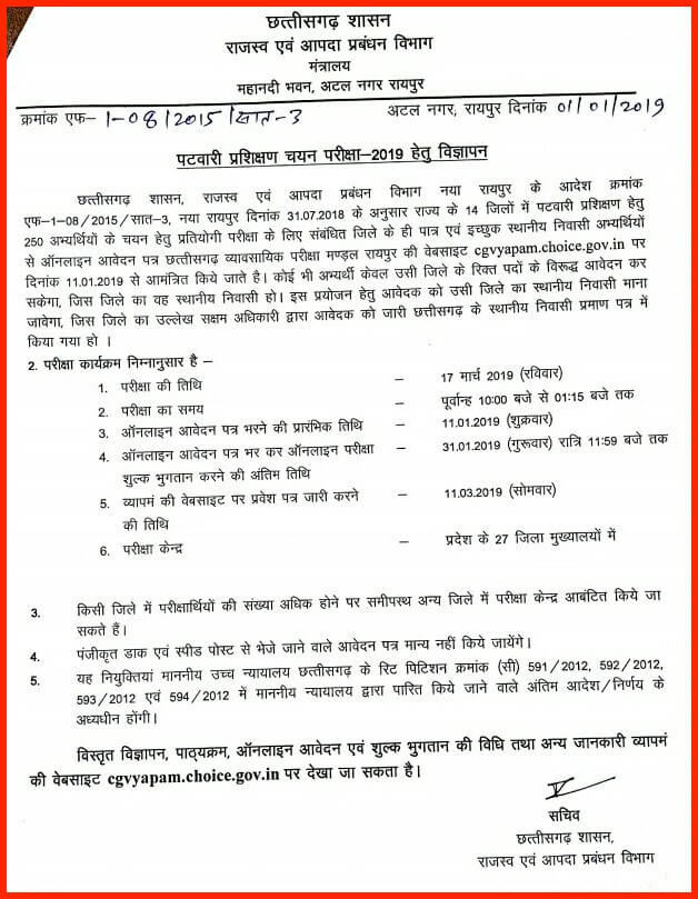 Click Here For CG Vyapam Recruitment 2019 Notice