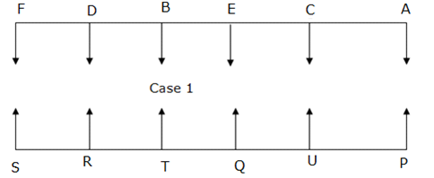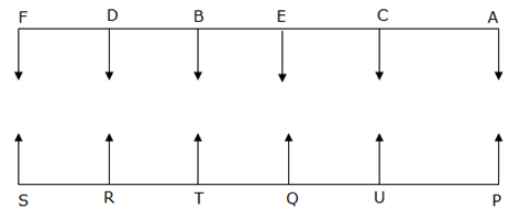 बारह दोस्त समानांतर पंक्तियों में बैठे होते हैं जिनमें छह व्यक्ति होते हैं, इस तरह से आसन्न व्यक्तियों के बीच समान दूरी होती है। पंक्ति 1 में – A, B, C, D, E, और  F बैठे हैं और उनमें से सभी दक्षिण का सामना कर रहे हैं। पंक्ति 2 में – P, Q, R, S, T, और U बैठे हैं और उनमें से सभी उत्तर का सामना कर रहे हैं।