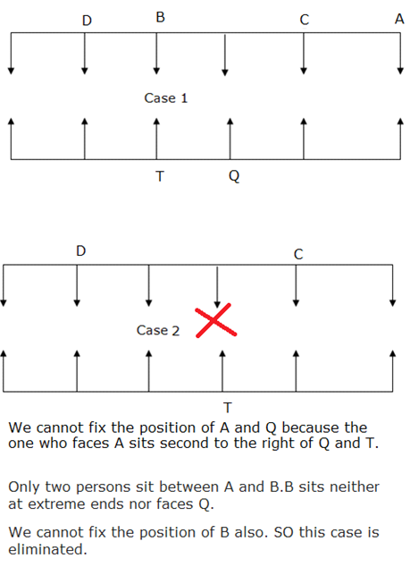 A का सामना करने वाला व्यक्ति Q के दाईं ओर दूसरे स्थान पर बैठता है