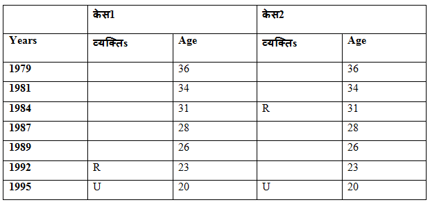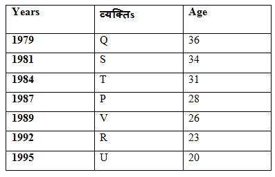P, Q, R, S, T, U, और V विभिन्न वर्षों, 1995, 1997, 1979, 1989, 1984, 1987 और 1981 में पैदा हुए थे, लेकिन एक ही क्रम में जरूरी नहीं। उनकी आयु की गणना उसी महीने और उसी तारीख को 2015 के आधार पर की जाती है।