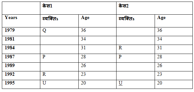 P और U के बीच केवल दो व्यक्ति पैदा हुए हैं। R और Q के बीच तीन से अधिक व्यक्ति पैदा हुए हैं। इस कथन से हम  मामले 2 में Q की स्थिति को ठीक नहीं कर सकते हैं, इसलिए यह मामला समाप्त हो गया है