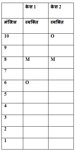 M शीर्ष से तीसरी मंजिल पर रहता है। केवल एक व्यक्ति M और O के बीच रहता है