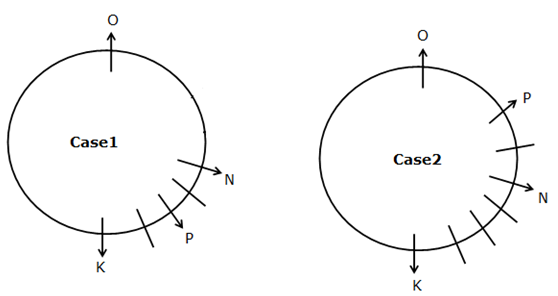 O K के विपरीत बैठता है। इस कथन से व्यक्ति की संख्या जो O और K बीच बैठती है दोनों तरफ बराबर होती है