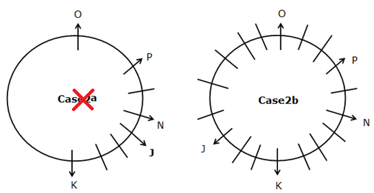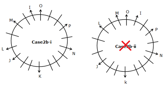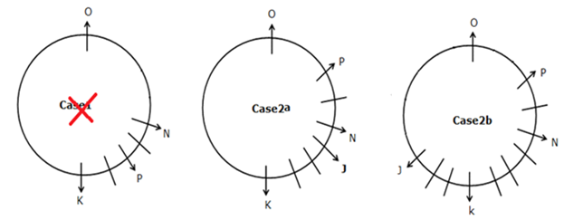 तो यदि 2 a के मामले में दो व्यक्ति J और P के बीच बैठते हैं जब J के बाईं ओर गिना जाता है। यदि हम दो के व्यक्ति को K के बाएं से K और O के बीच रखते हैं, तो स्थिति संतुष्ट नहीं होती है, इसलिए मामला 2 a समाप्त हो जाता है।