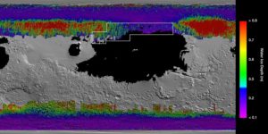 नासा के वैज्ञानिकों ने मंगल ग्रह पर पानी की बर्फ की मौजूदगी दिखाने वाला नक्शा विकसित किया