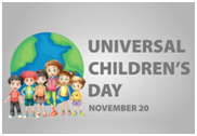 - विश्व भर में बच्चों के बीच जागरूकता, बच्चों के कल्याण में सुधार के लिए अंतर्राष्ट्रीय बाल दिवस को बढ़ावा देने के लिए 20 नवंबर को प्रतिवर्ष अंतर्राष्ट्रीय बाल दिवस मनाया जाता है। इसकी स्थापना 1954 में हुई थी।