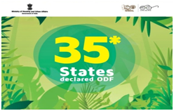 - 35 राज्यों और केंद्र शासित प्रदेशों के शहरी क्षेत्र ओडीएफ हो गए हैं। कुल मिलाकर, 4,372 में से 4,320 शहरों ने खुद को ओडीएफ घोषित किया है, जिनमें से 4,167 शहरों को तीसरे पक्ष के सत्यापन के माध्यम से प्रमाणित किया गया है।