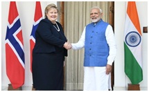 • Indian and Norwegian governments agreed to work more closely on oceans by signing a MoU and establishing the India-Norway Ocean Dialogue during the Norwegian Prime Minister’s visit to India in January.