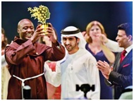 - Tabichi, a member of the Franciscan religious order, received his prize at a ceremony in Dubai hosted by actor Hugh Jackman.