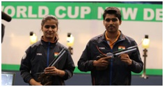- After winning an International Shooting Sport Federation World Cup stage gold, the pair of stars Bhaker and Chaudhary won senior gold together