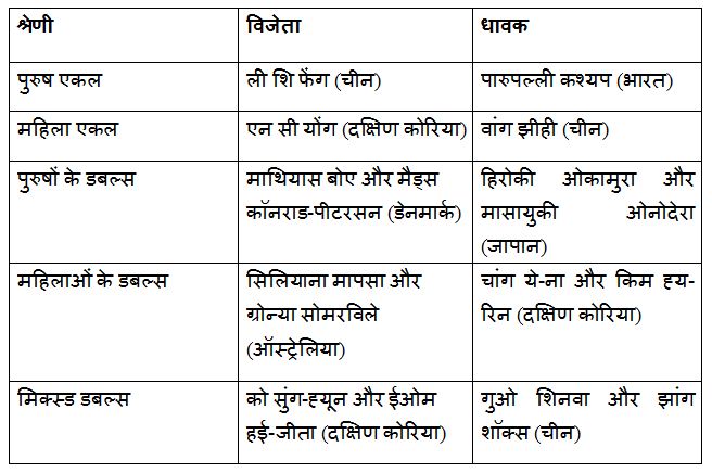 - पूर्व राष्ट्रमंडल खेलों के चैंपियन पारुपल्ली कश्यप का कनाडा ओपन सुपर 100 टूर्नामेंट में शानदार प्रदर्शन के बाद कैलगरी में चीन के ली शि फेंग के तीन गेम के रोमांचक मुकाबले में हारने के बाद उनका अंत हुआ।