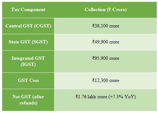 Net GST collections after refunds: ₹19.56 lakh crore (+8.6% YoY).