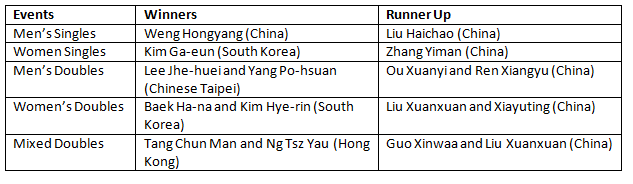 China defeated Japan 3-2 to win the 2019 Badminton Asia Mixed Team Championships. This was the second edition of the tournament.11 teams including India was part of this tournament that was held in Queen Elizabeth Stadium in Hong Kong. The event was also known as the Tong Yun Kai Cup 2019 named after the president of the Hong Kong badminton association. In the mixed doubles, Chinese pair He Jiting and Du Yue has defeated apanese pair Yuta Watanabe and Arisa Higashino.