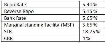 - On the basis of an assessment of the current and evolving macroeconomic situation, the Monetary Policy Committee (MPC) decided to reduce the policy repo rate under the liquidity adjustment facility (LAF) by 35 basis points (bps) from 5.75 per cent to 5.40 per cent with immediate effect