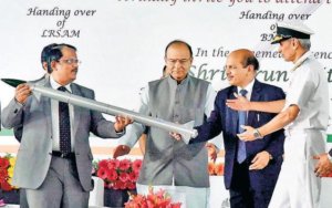 Defence Minister ArunJaitleyhanded over the Long-Range Surface-to-Air Missile (LRSAM) to Indian Navy