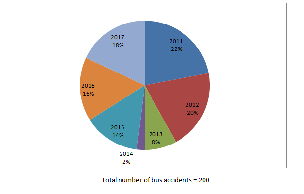 - What is the difference between the number of bus accidents in 2017 and that in 2015?
