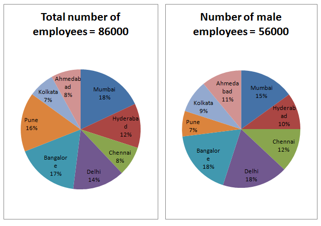 [WpProQuiz 520]Directions (Q. 1-5): In the following pie charts the percentage of employees of TCS Company working in eight different cities has been given. Study these pie-charts carefully to answer the questions.