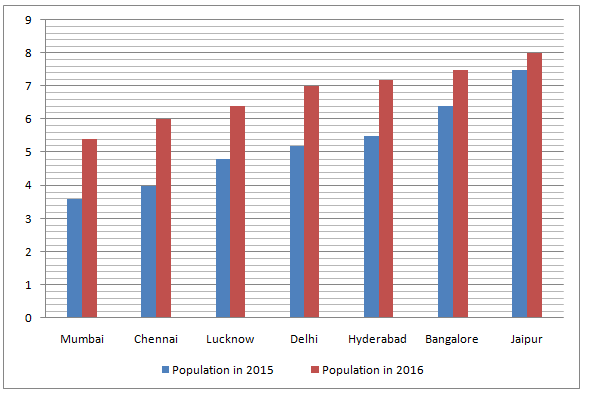 - What is the percentage rise in the population of Lucknow from 2015 to 2016?