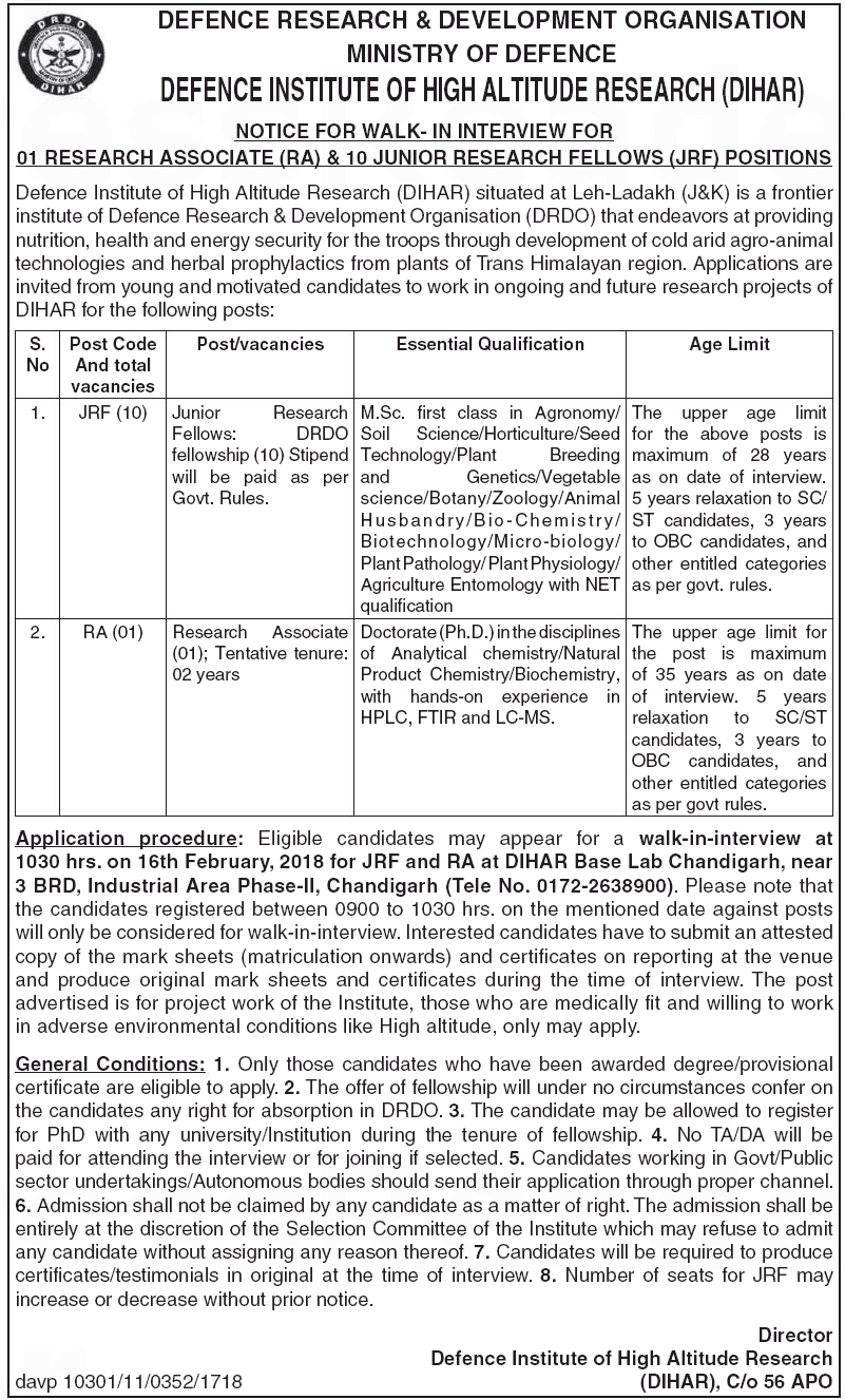 • Interview held at Delhi or any other place as decided by RAC/ DRDO.