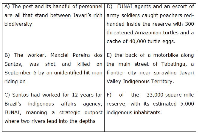 From the given options only A-F, B-D is matched and make a meaningful sentence. The correct answer after matching will be