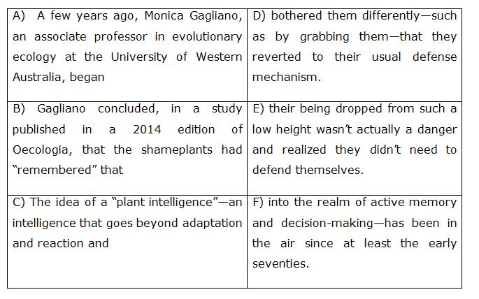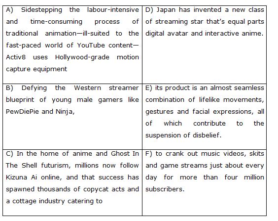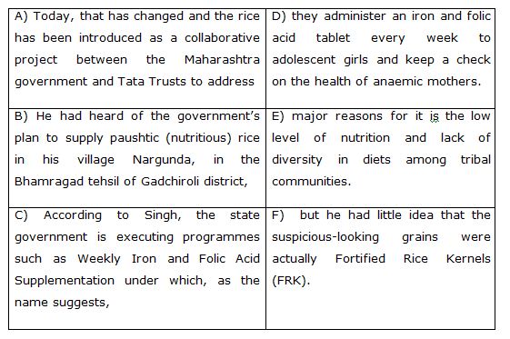 Direction (1-5): In the following questions two columns are given containing three Sentences/phrases each. In first column, sentences/phrases are A, B and C and in the second column the sentences/phrases are D, E and F. A sentence/phrase from the first column may or may not connect with another sentence/phrase from the second column to make a grammatically and contextually correct sentence. Each question has five options, four of which display the sequence(s) in which the sentences/phrases can be joined to form a grammatically and contextually correct sentence. If none of the options given forms a correct sentence after combination, mark (e), i.e. “None of these” as your answer.
