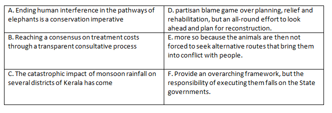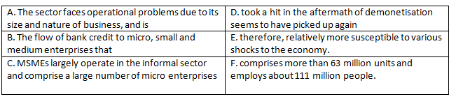 Direction (11-15): In the following questions two columns are given containing three sentences/phrases each. In first column, sentences/phrases are A, B and C and in the second column the sentences/phrases are D, E and F. A sentence/phrase from the first column may or may not connect with another sentence/phrase from the second column to make a grammatically and contextually correct sentence. Each question has five options, four of which display the sequence(s) in which the sentences/phrases can be joined to form a grammatically and contextually correct sentence. If none of the options given forms a correct sentence after combination, mark (e), i.e. “None of these” as your answer.