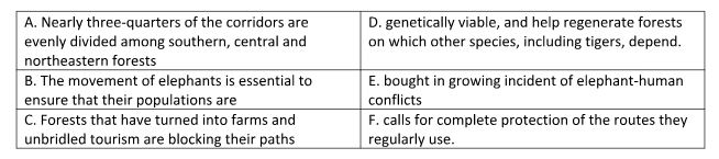 11). Answer: a) – Ending human interference in the pathways of elephants is a conservation imperative, more so because the animals are then not forced to seek alternative routes that bring them into conflict with people.