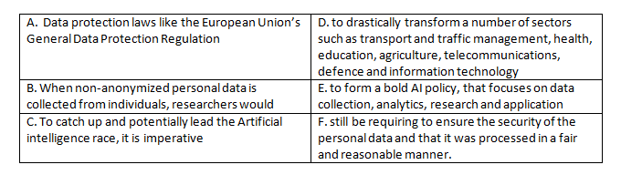 14). Answer: d) – To catch up and potentially lead the AI race, it is imperative for India to form a bold AI policy that focuses on data collection, analytics, research and application