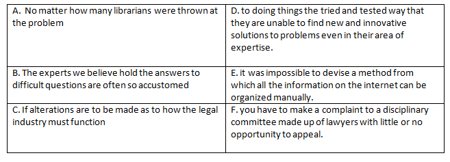 15). Answer: a) The experts we believe hold the answers to difficult questions are often so accustomed to doing things the tried and tested way that they are unable to find new and innovative solutions to problems even in their area of expertise.