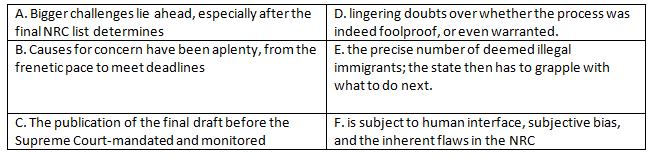 11). Answer: b) – Bigger challenges lie ahead, especially after the final NRC list determines the precise number of deemed illegal immigrants; the state then has to grapple with what to do next.
