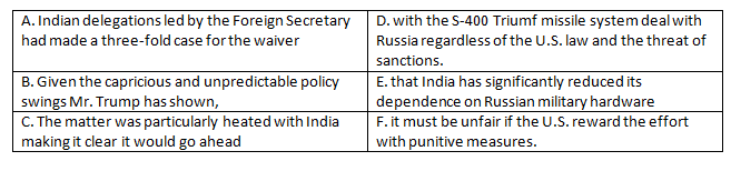 12). Answer: a) – The matter was particularly heated with India making it clear it would go ahead with the S-400 Triumf missile system deal with Russia regardless of the U.S. law and the threat of sanctions.