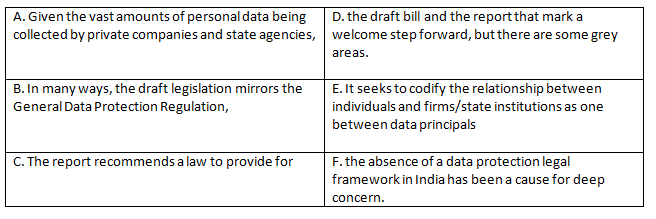 13). Answer: c) – Given the vast amounts of personal data being collected by private companies and state agencies, the absence of a data protection legal framework in India has been a cause for deep concern.