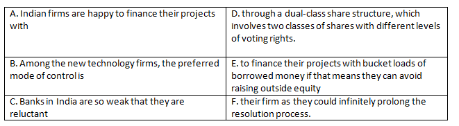 Direction (11-15): In the following questions two columns are given containing three sentences/phrases each. In first column, sentences/phrases are A, B and C and in the second column the sentences/phrases are D, E and F. A sentence/phrase from the first column may or may not connect with another sentence/phrase from the second column to make a grammatically and contextually correct sentence. Each question has five options, four of which display the sequence(s) in which the sentences/phrases can be joined to form a grammatically and contextually correct sentence. If none of the options given forms a correct sentence after combination, mark (e), i.e. “None of these” as your answer.