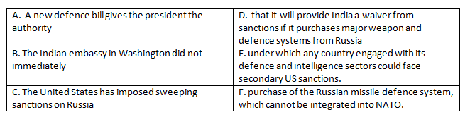 15). Answer: d) – The United States has imposed sweeping sanctions on Russia, under which any country engaged with its defence and intelligence sectors could face secondary US sanctions