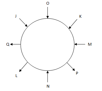 Eight persons J, K, L, M, N, O, P and Q are sitting in a circular table. Some of them are facing centre and some of them are facing away from the centre.