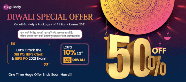 Guidely celebrates Diwali with you and on this special occasion, we have provided the Great Festival Offer!!! with Flat 50% OFF on all our packages provided for all bank exams. Use Code “Diwali” and avail extra 10% OFF. Let’s crack the upcoming IBPS Clerk, IBPS PO, SBI PO, and other exams with the best preparation.