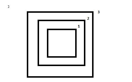 Inner most Square table is numbered 1, middle square table is numbered as 2 and the outermost square table is numbered 3.
