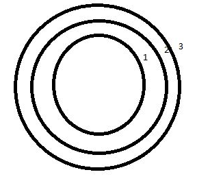 Inner most circlular table is numbered 1, middle circular table is numbered as 2 and the outermost circlular table is numbered 3.In all circles there are eight vacant seats each with equidistant.