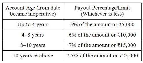 1) आरबीआई की ‘त्वरित भुगतान सुविधा योजना – निष्क्रिय खाते और दावा न की गई जमा’ के तहत, 10 वर्ष और उससे अधिक समय से निष्क्रिय खातों के लिए भुगतान प्रतिशत क्या है?